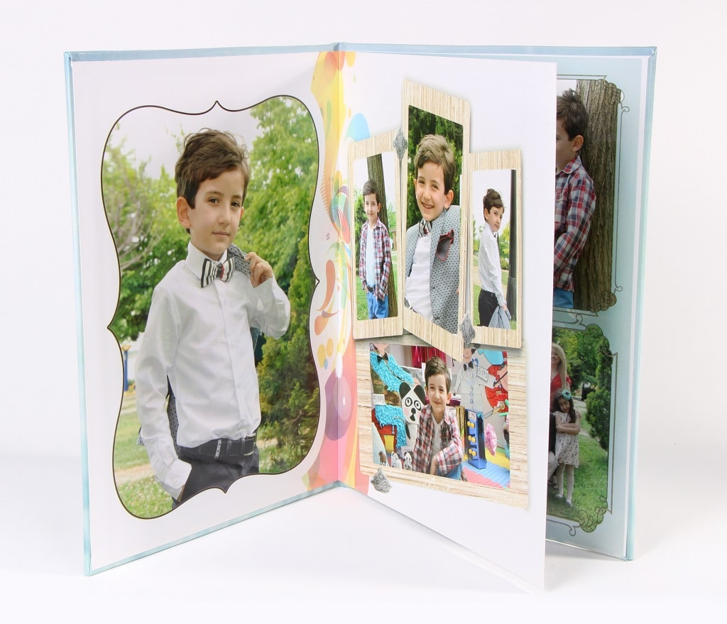 5-10 adet fotoğrafın bulunduğu foto kapaklı panoramik albüm